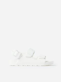 Waterproof sandal with adjustable buckles and an anatomically shaped footbed.