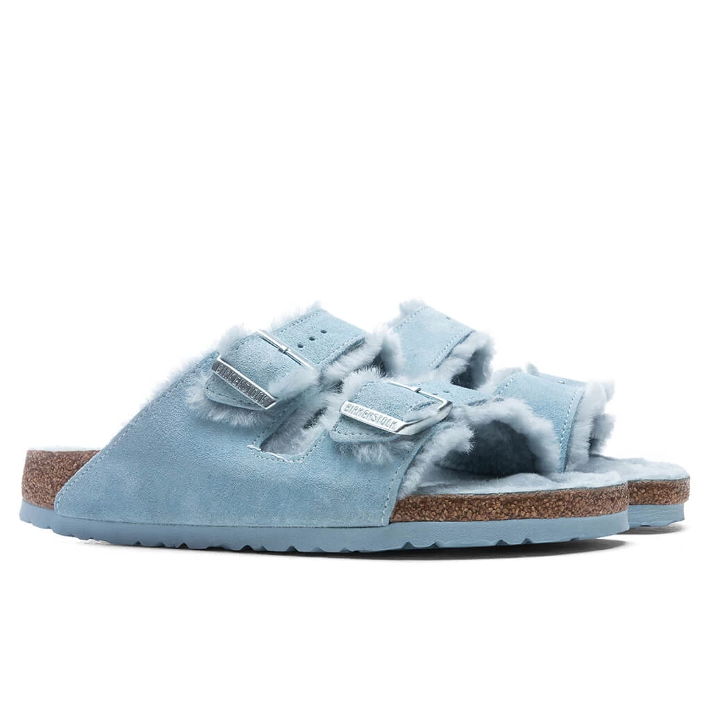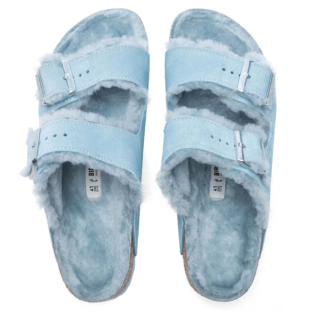 Perfect for the cooler months, the Narrow Arizona Shearling from Birkenstock features a suede upper with a genuine shearling lining for optimal comfort. The anatomically shaped cork-latex footbed offers premium comfort, while the lambswool-lined straps with two individually adjustable metal pin buckles provide functionality. The EVA outsole completes the aesthetic.