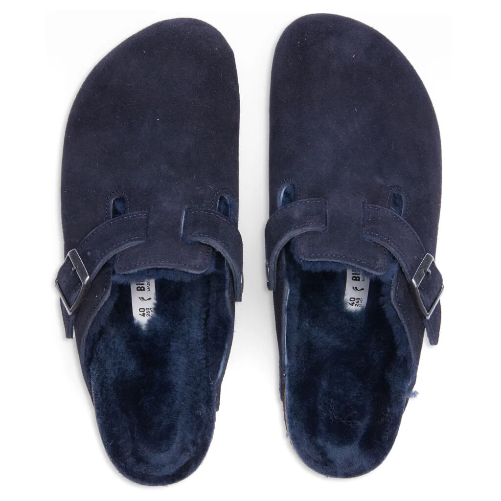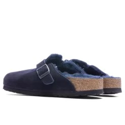Birkenstock introduces the Narrow Boston Shearling. Featuring a signature anatomically-shaped cork-latex footbed, the silhouette features a suede upper paired with a shearling lining. The individually adjustable metal pin buckle at the strap adds a functional touch. The EVA outsole completes the rest of the design.