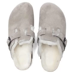 Birkenstock reimagines the traditional Arizona model with a Shearling lining for luxe and smooth experience. A cork-latex footbed features an EVA sole for comfort which works alongside the suede upper straps. Functional details include adjustable closures and a cork-latex footbed for optimal cushioning.