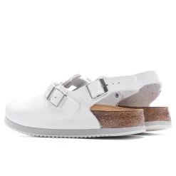 Perfect for any footwear collection, Birkenstock’s Tokio Super Grip Leather is a must-have footwear design. Composed of a natural leather upper, the clog features an adjustable backstrap as well as a contoured cork-latex footbed for added comfort. The suede footbed lining offers added comfort, while the rubber outsole protects the rest of the look.