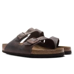 Iconic footwear brand Birkenstock introduces the Wide Arizona Soft Footbed. The silhouette features an oiled nubuck leather upper, while the two-strap design includes individually adjustable metal pin buckles. The design features a suede lining for optimal comfort, while the soft anatomically shaped footbed forms to your feet. The additional foam layer at the footbed and the EVA sole complete the overall look.