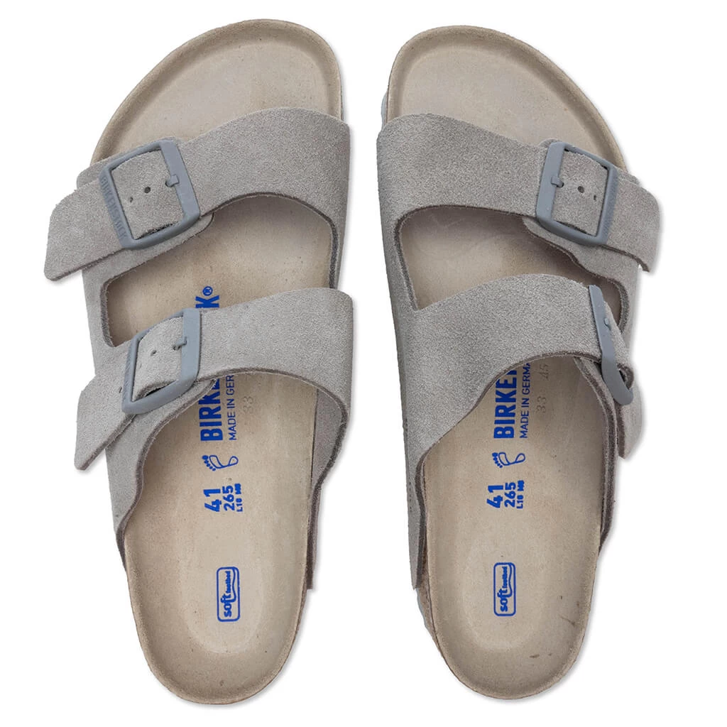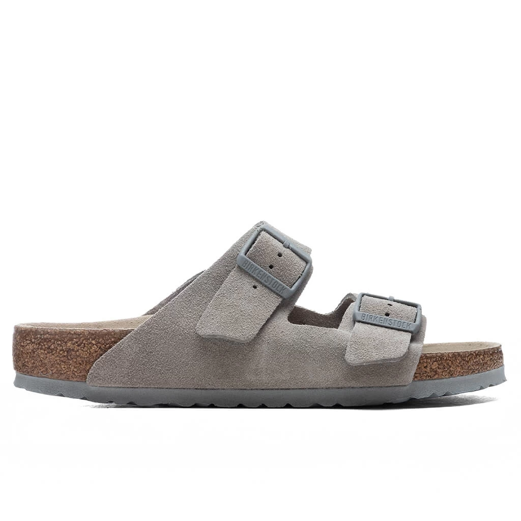 The legendary two-strap design from Birkenstock continues with the Wide Arizona Soft Footbed. Featuring a suede upper and lining, the signature silhouette spotlights the classic anatomically shaped soft footbed. The color-coordinated buckles feature a textile and matte aesthetics, while the additional foam layer provides optimal comfort. The EVA outsole ties together the rest of the look.