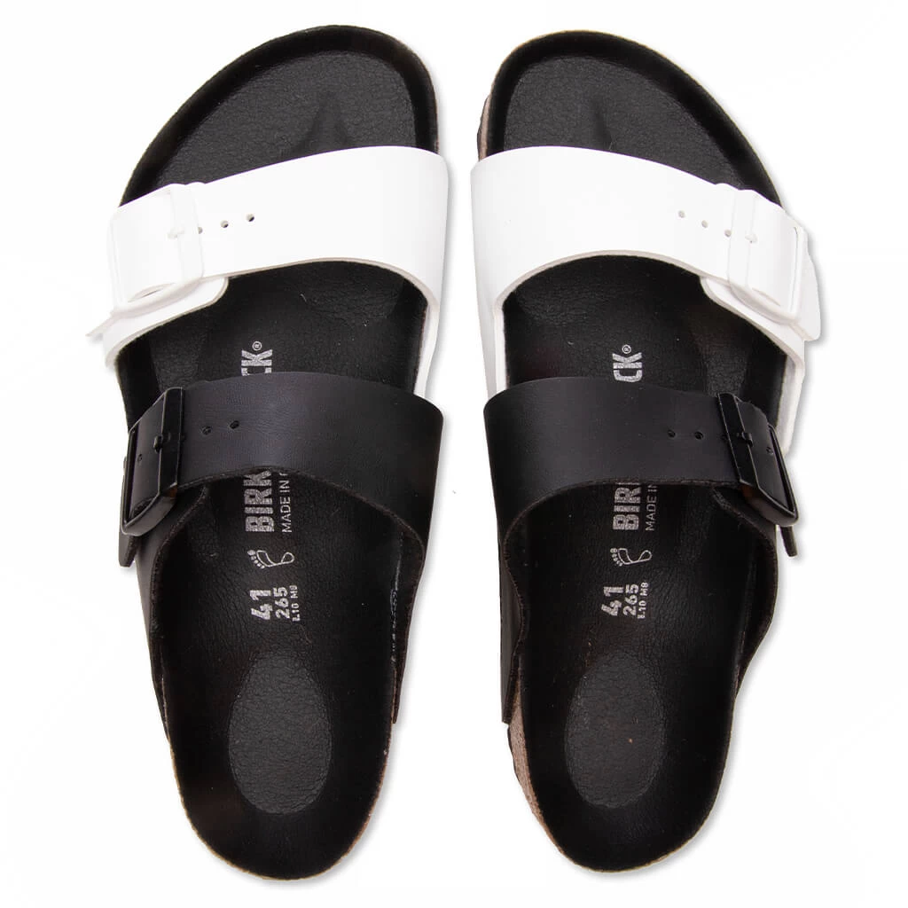 The distinct styling of the Birkenstock Wide Arizona Split Birko-Flor is designed with a monochromatic colorway, applicable for all styles. A suede lining optimizes comfort within its EVA sole while Birko-Flor constructs the upper- a skin-friendly material that is durable and comfortable. Signature branding completes its design as it can be found within the outer sole and metal buckle closures.