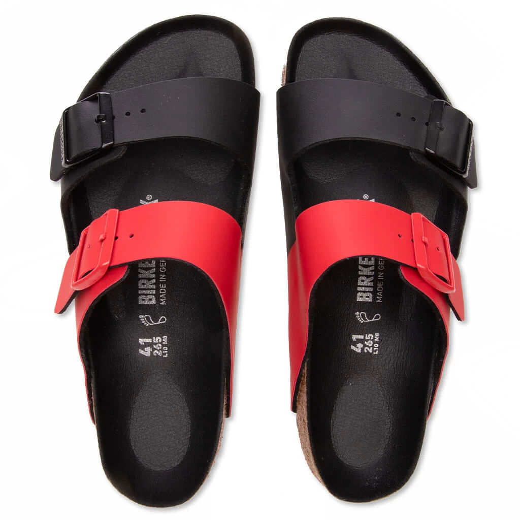 The distinct styling of the Birkenstock Wide Arizona Split Birko-Flor is designed with a monochromatic colorway, applicable for all styles. A suede lining optimizes comfort within its EVA sole while Birko-Flor constructs the upper- a skin-friendly material that is durable and comfortable. Signature branding completes its design as it can be found within the outer sole and metal buckle closures.