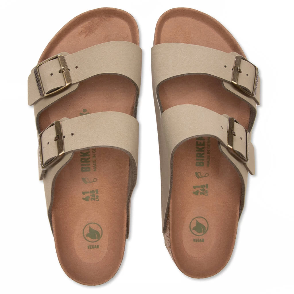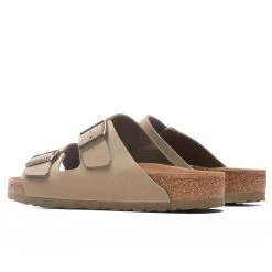 The iconic Arizona silhouette from Birkenstock is reintroduced in this latest rendition. Featuring a vegan construction, the design is made from a synthetic material called Birkibuc. The anatomically shaped cork-latex footbed allows for optimal comfort, while the microfiber footbed lining accentuates that component. The two-strap design incorporates individually adjustable metal pin buckles for an adjustable experience. An EVA outsole completes the aesthetic.