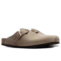 German footwear brand Birkenstock has altered the definition of sandals with their comfortable, high-quality, and versatile designs, as seen in the Wide Boston Soft Footbed. The sophisticated and unique design of this sandal features an oiled nubuck leather upper with a cork-latex footbed. The lining of the footbed contains a suede material, while an authentic EVA sole is placed underneath. A single strap with a metal pin buckle completes the design.