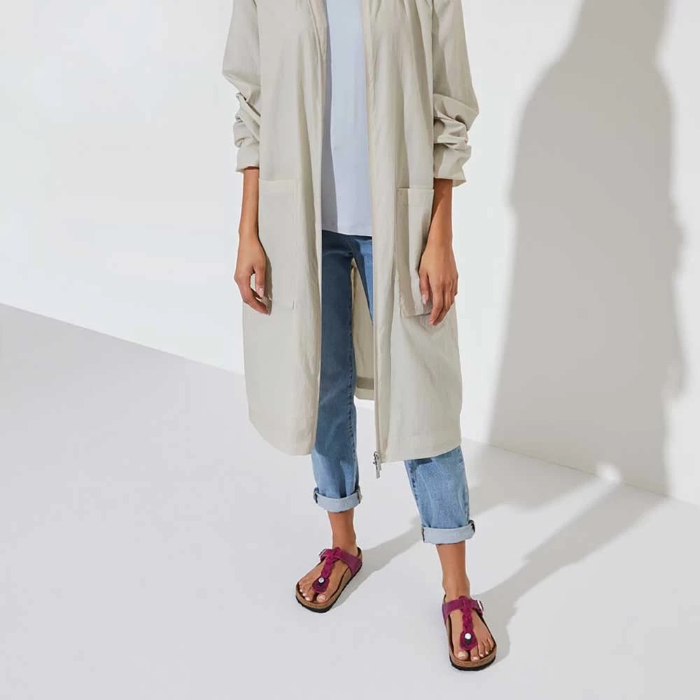 The BIRKENSTOCK Gizeh brings legendary comfort and boho-inspired braiding to the thong sandal. Featuring oiled leather for a unique, lived-in look. Complete with classic BIRKENSTOCK design elements, like a contoured cork-latex footbed for the ultimate in all-day support.