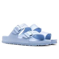 Perfect for all times of wear, the Birkenstock Womenās Narrow Arizona Eva is an essential footwear offering for any wardrobe. Featuring a molded EVA upper, the silhouette incorporates an anatomically shaped footbed made from additional EVA. The two-strap design features individually adjustable metal tongue buckles. The silhouette is both waterproof, shock-absorbing, and ultra-lightweight.