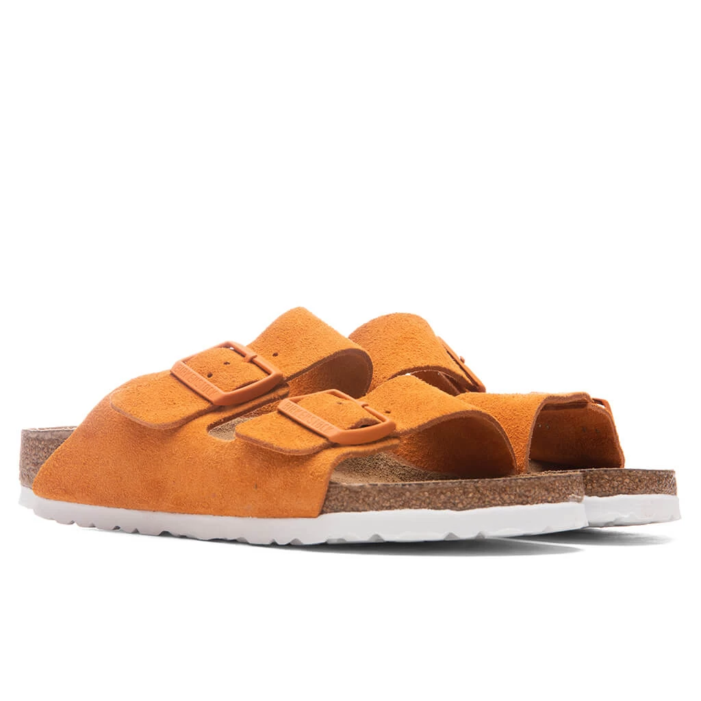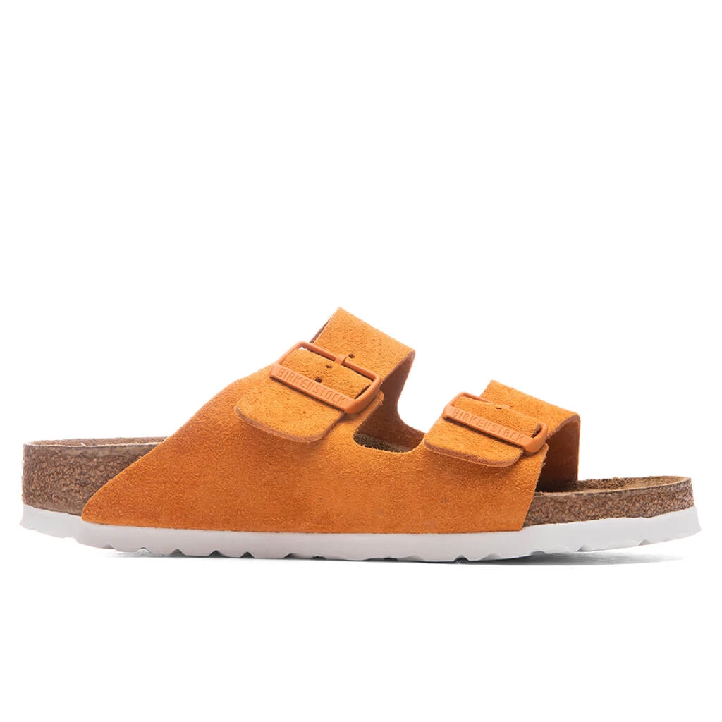 The signature Birkenstock soft footbed is featured in the Narrow Arizona Soft Footbed. With an additional foam layer, the extra soft footbed offers all-day comfort with every step. The upper is composed of an oil nubuck leather material, while a suede material is placed at the footbed’s lining. An EVA sole placed underneath offers traction, while the adjustable metal pin buckle completes the design.