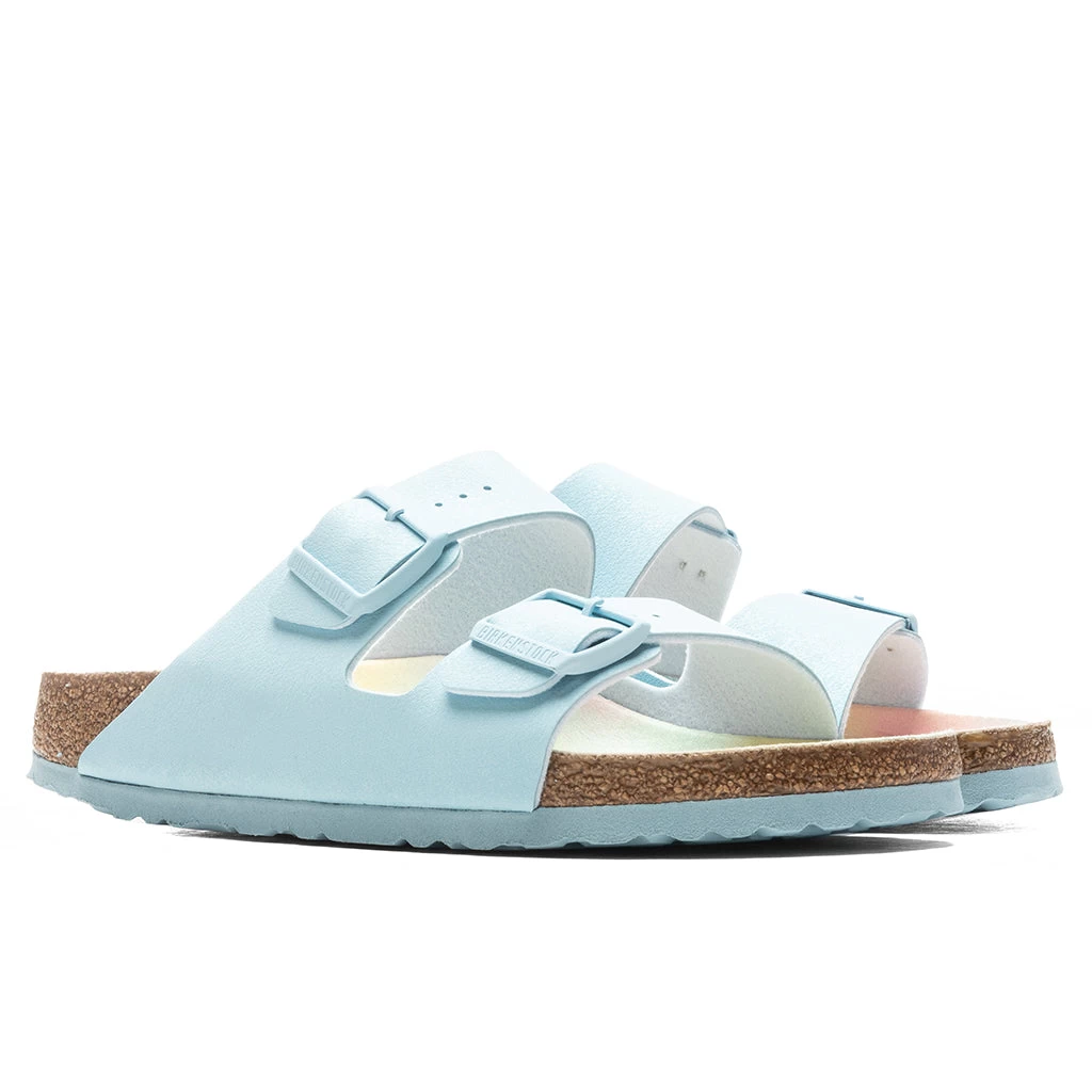 The iconic Birkenstock legacy moves forward with the Womenâs Narrow Arizona Vegan Birkibuc. Featuring a Birkibuc upper, the silhouette incorporates a two-strap design with a microfiber footbed lining. The anatomically shaped cork-latex footbed provides premium comfort, while the two straps each include individually adjustable metal pin buckles. The EVA outsole offers optimal traction and durability during all times of wear.