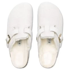 Birkenstock reimagines the traditional Boston model with a Shearling lining for a luxe and smooth experience. A cork-latex footbed features an EVA sole for comfort which works alongside the suede upper straps. Functional details include adjustable closures and a cork-latex footbed for optimal cushioning.