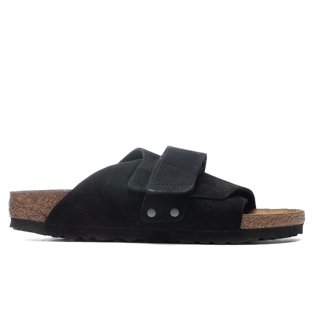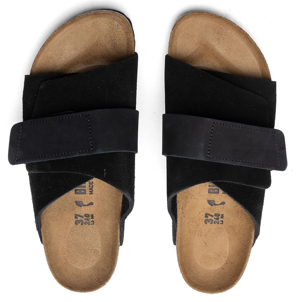 Inspired by the iconic ZĂŒrich model, the Birkenstock Womenâs Narrow Kyoto stands out with its compact silhouette. Featuring a suede and nubuck leather upper, the design incorporates a suede lining that provides optimal comfort during all times of wear. The anatomically shaped cork-latex footbed forms to your foot, while the individually adjustable hook and loop closure offer security. The EVA outsole completes the rest of the silhouette.